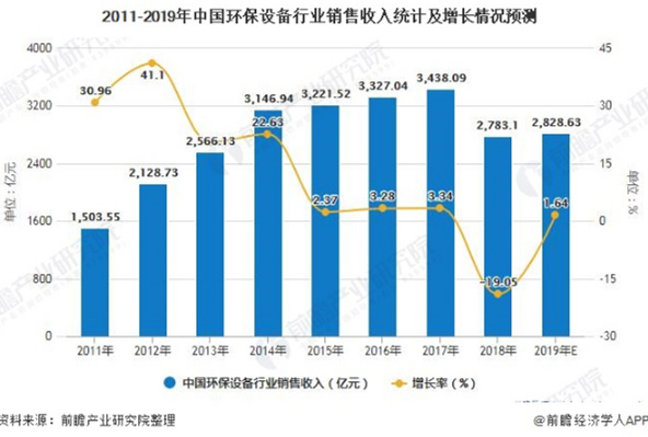 4、2019年中國環(huán)保設(shè)備行業(yè)銷售收入將chao2800億元