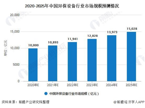 預(yù)計2020年,環(huán)保裝備制造業(yè)市場規(guī)模將達到10000億元,2025年市場規(guī)模將達到15028億元。