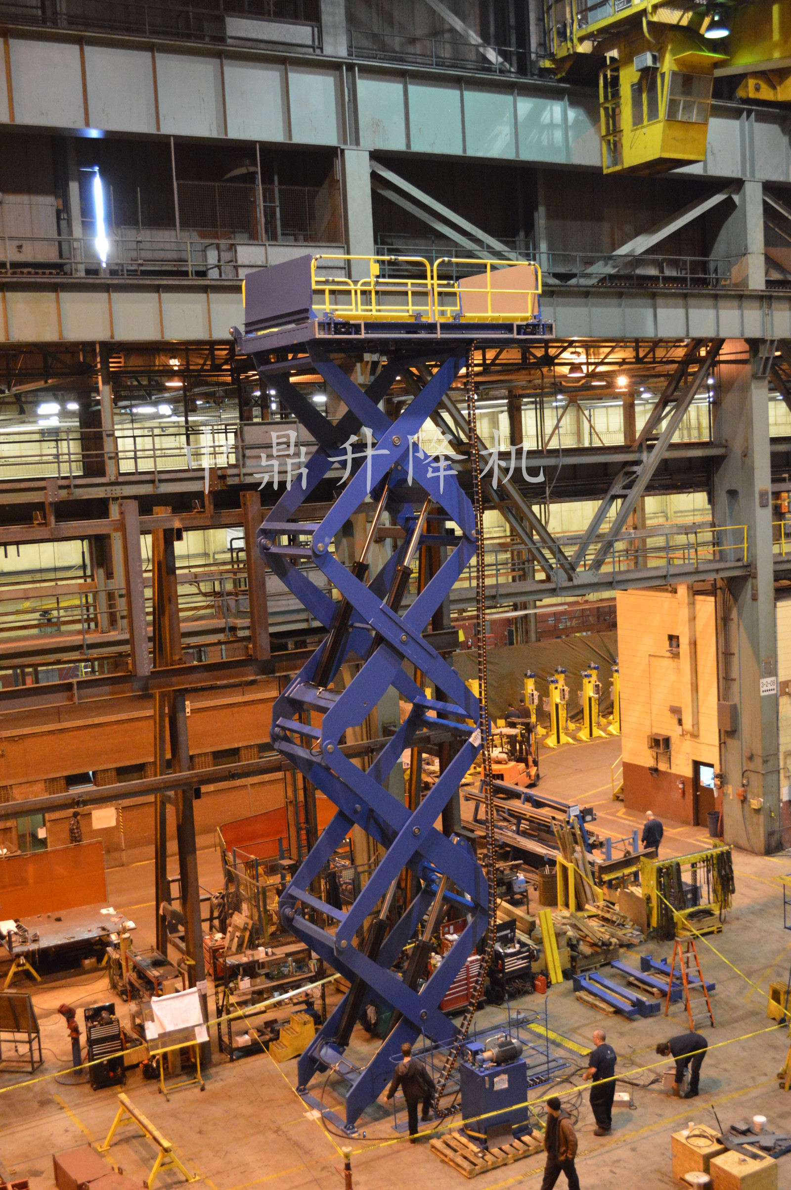 航空航天與國防科技專用升降平臺,起重能力為 12,000 磅。這款四級液壓剪叉式升降機的完全升起高度為 49 英尺,專為導彈防御試驗綜合體
