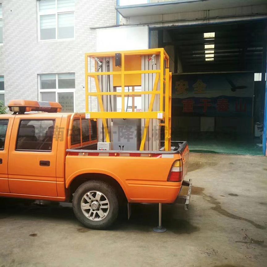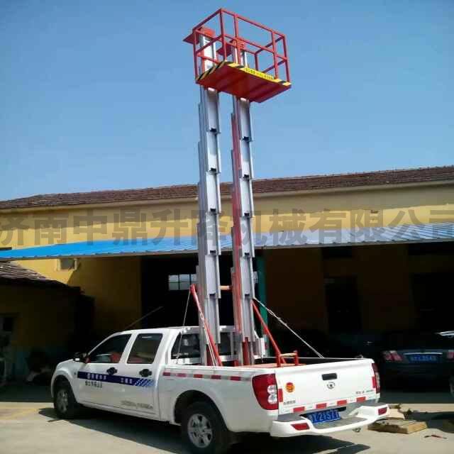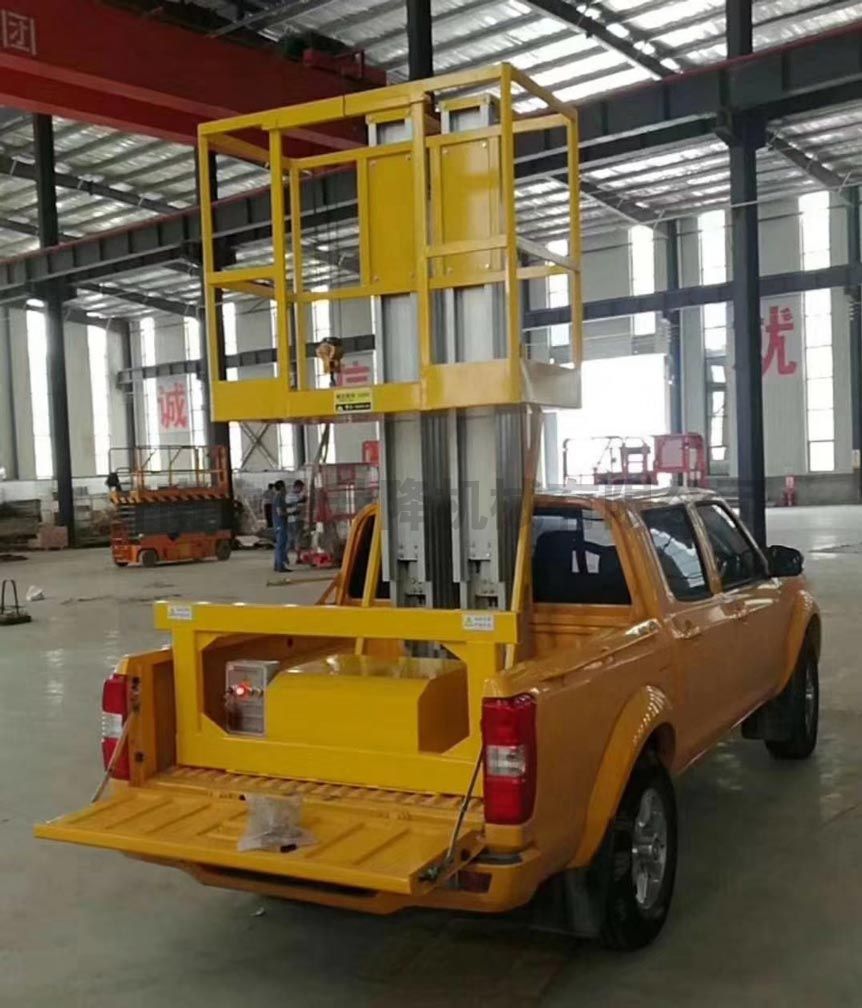 車載式鋁合金升降機產品介紹:把鋁合金式升降機安裝在汽車上的高空作業設備。適用場所:市政建設維護,路燈照明,公路設施維護,工程搶修,園林修車等。