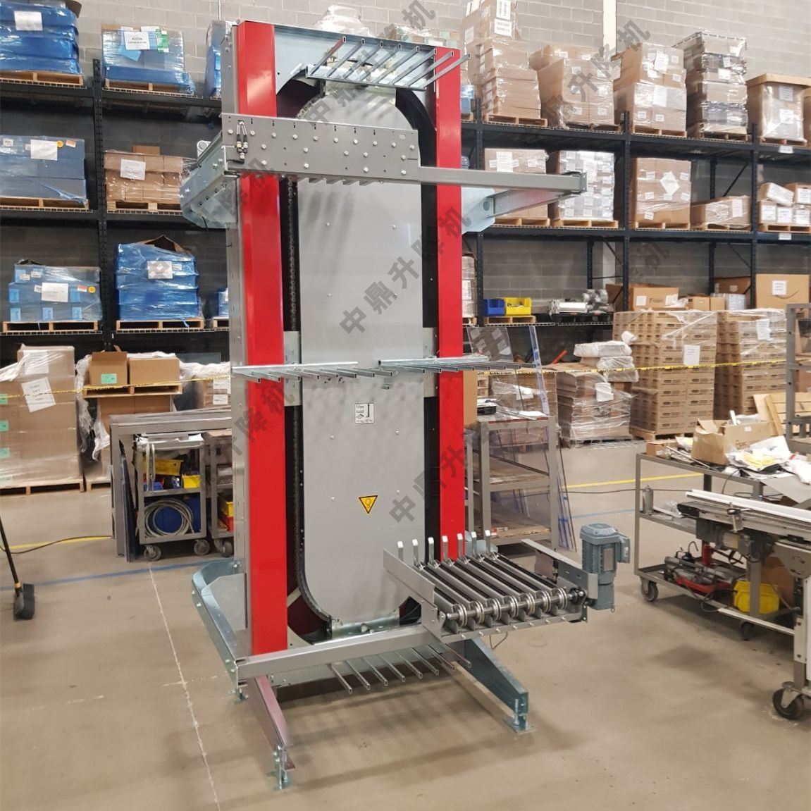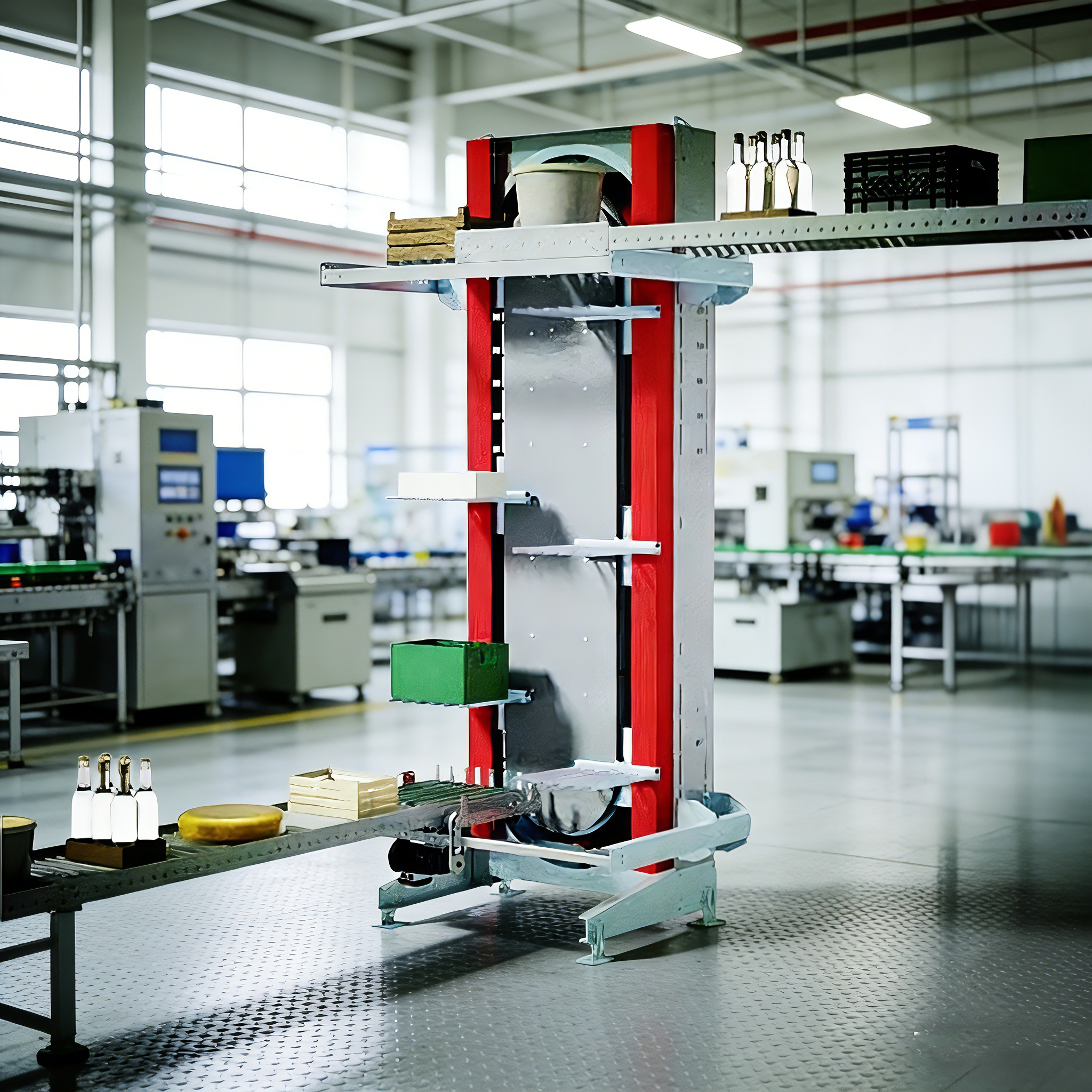 叉臂式提升機(jī)是一種?垂直連續(xù)式輸送設(shè)備?,通過鏈條或傳送帶上的掛載叉臂(搬運(yùn)桶)實(shí)現(xiàn)物料在低處與高處之間的循環(huán)運(yùn)輸,適用于自動(dòng)化生產(chǎn)線、倉(cāng)儲(chǔ)物流等場(chǎng)景?