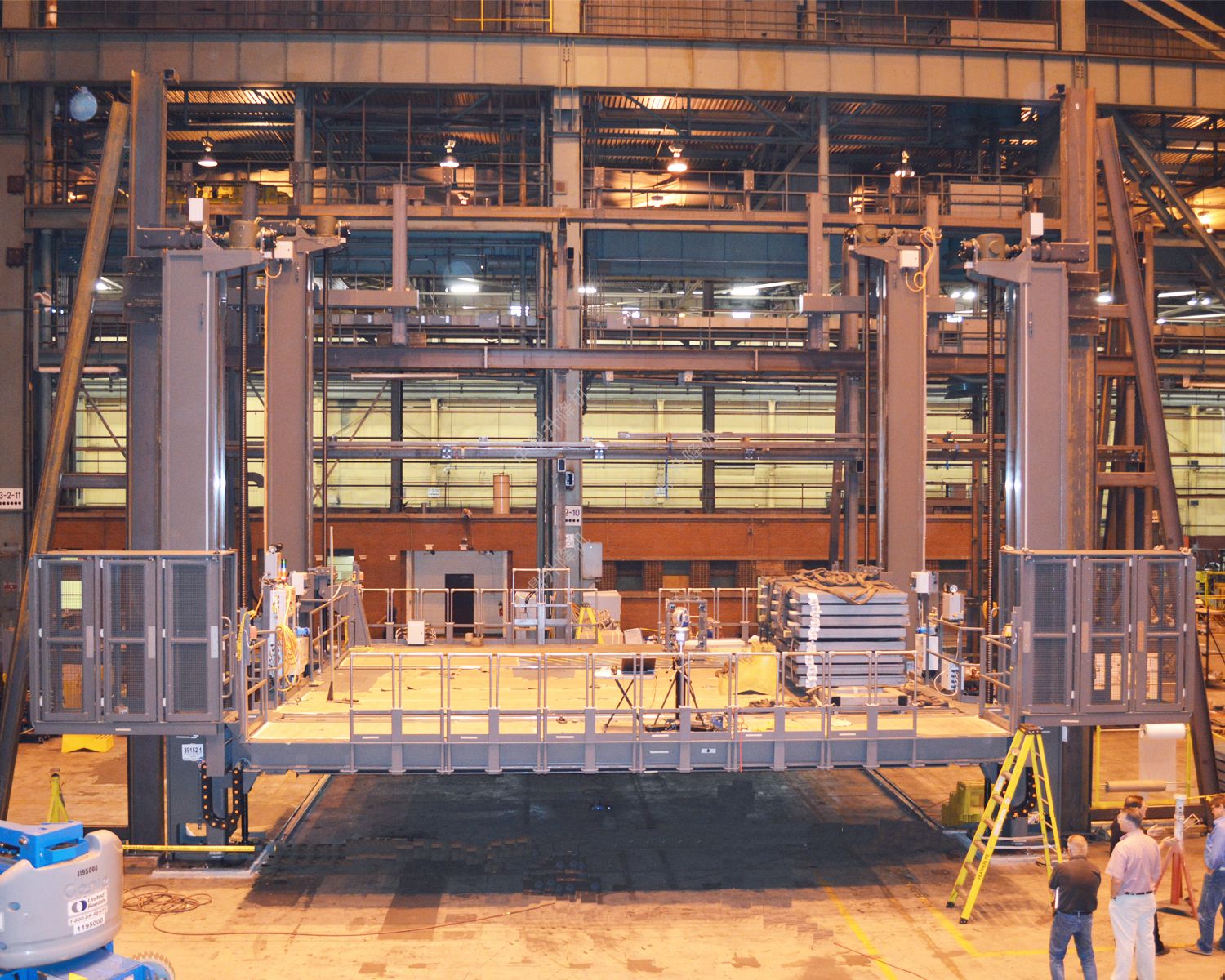 該大型四柱升降作業平臺為核能行業客戶量身打造,專用于核電站反應堆返修過程中技術人員的重管更換培訓與模擬操作。平臺用于測試設施,設計制造符合極其嚴苛的精度要求,并嚴格遵循核能行業質量標準,體現了極高的工程制造水平。